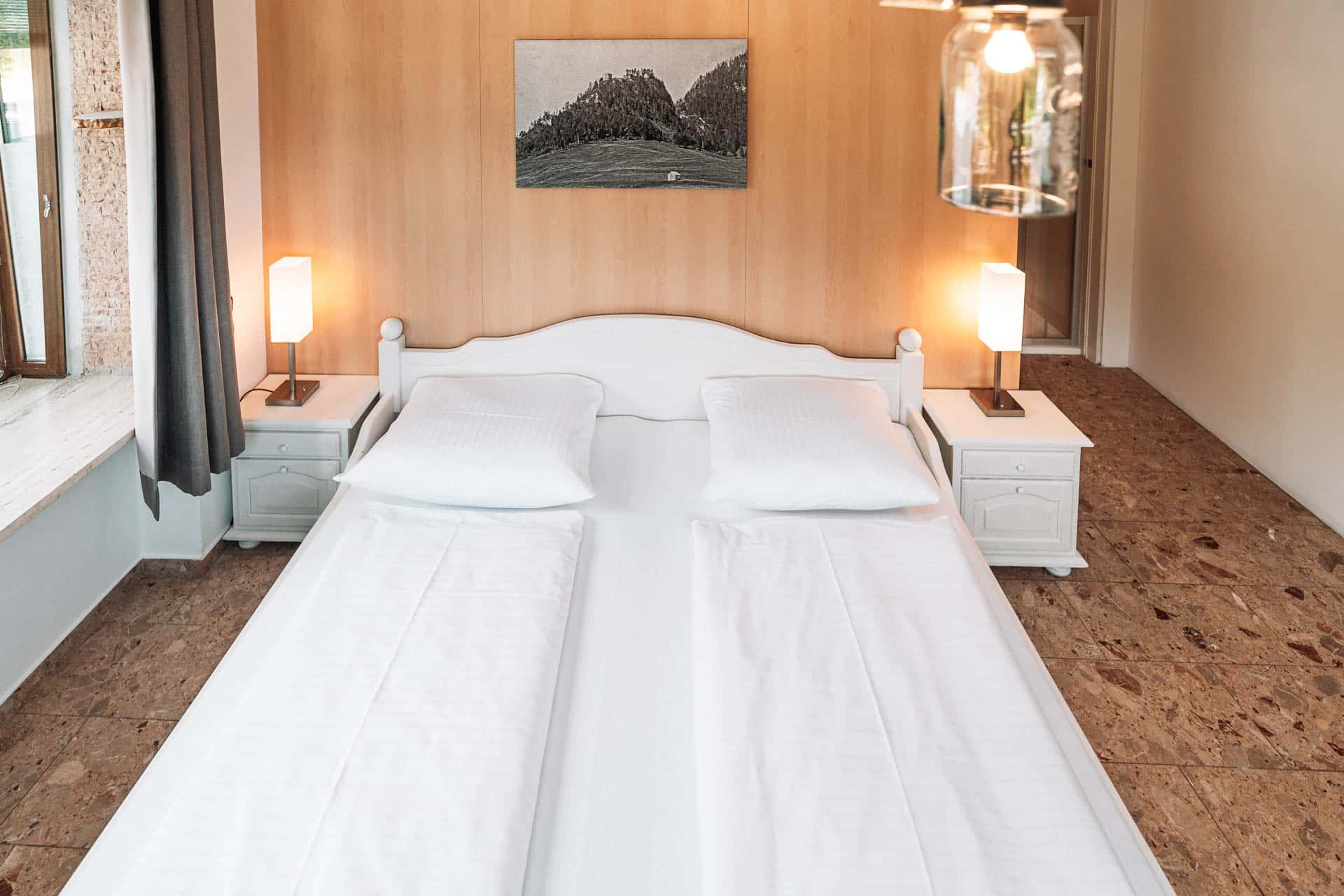 Die Doppelzimmer und Mehrbettzimmer verfügen über ein eigenes Badezimmer mit Dusche/WC. Einige Zimmer bieten zudem einen Balkon mit beeindruckendem Blick auf die Tiroler Berge und die Ruinen der Burg Ehrenberg. Alle Zimmer sind mit einem Fernseher ausgestattet. Ein Haartrockner, frische Handtücher und Bettwäsche sind ebenfalls vorhanden.
